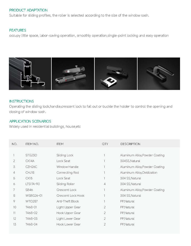 / Premium Custom Property Developer Aluminum Window & Door Hardware 304 Stainless Steel Hinges Handles Locks Thermal Break Strips